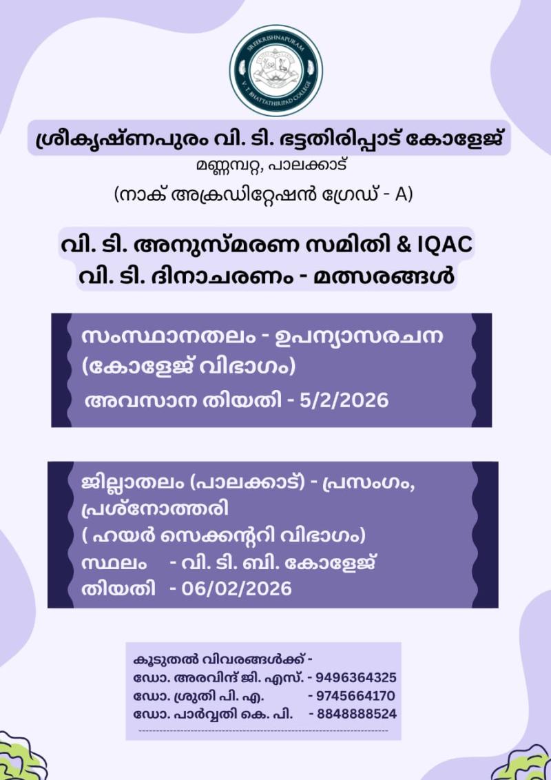 Sreekrishnapuram V.T. Bhattathiripad College,Mannampatta P.O. Palakkad-678633.