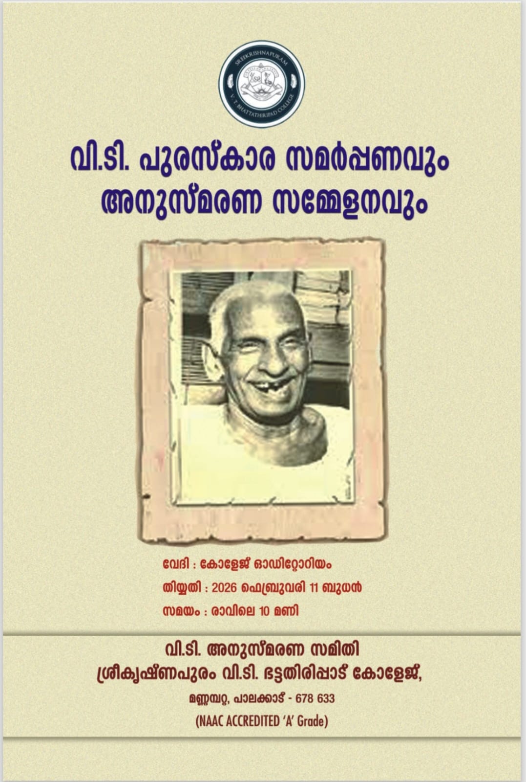 Sreekrishnapuram V.T. Bhattathiripad College,Mannampatta P.O. Palakkad-678633.