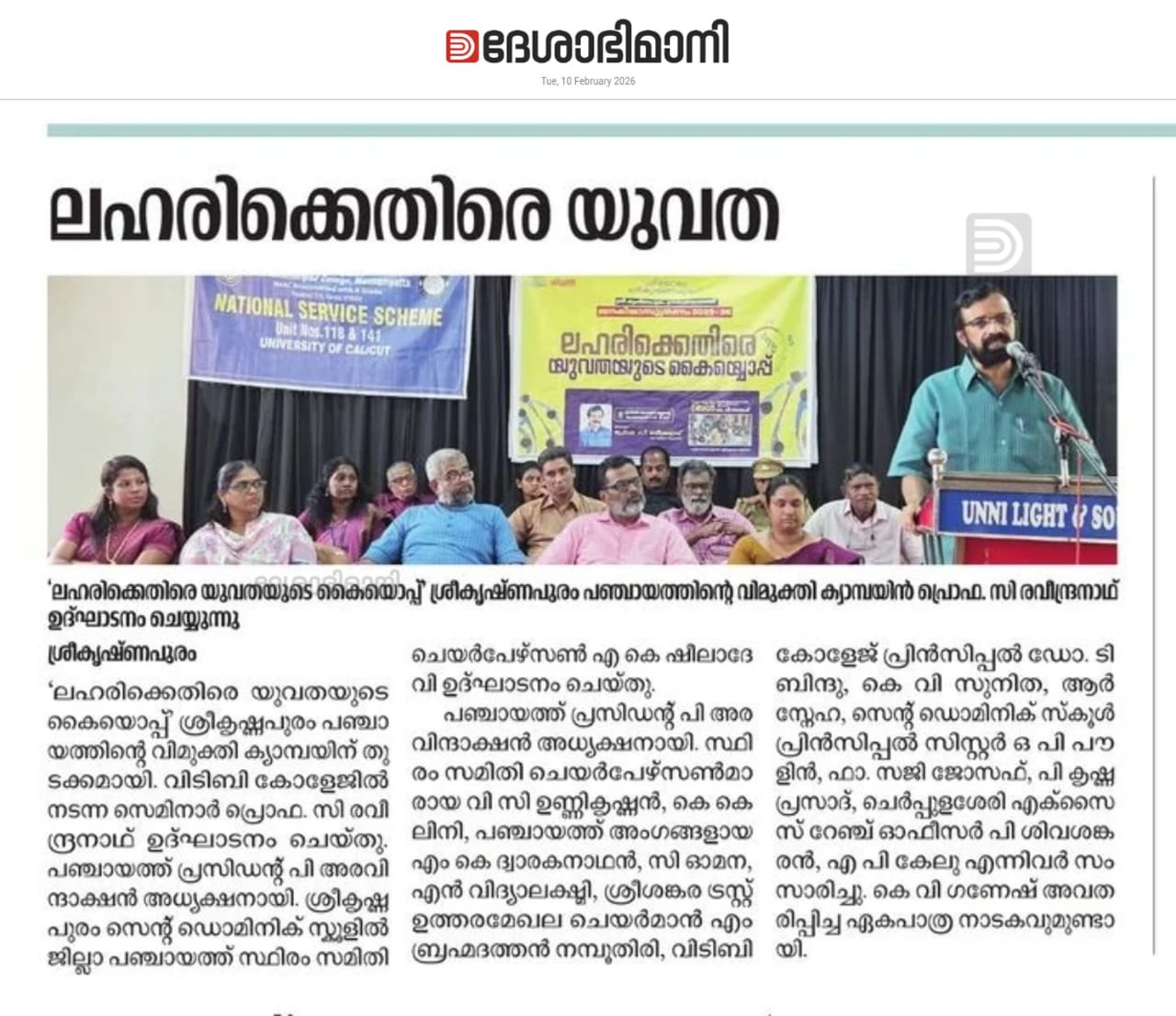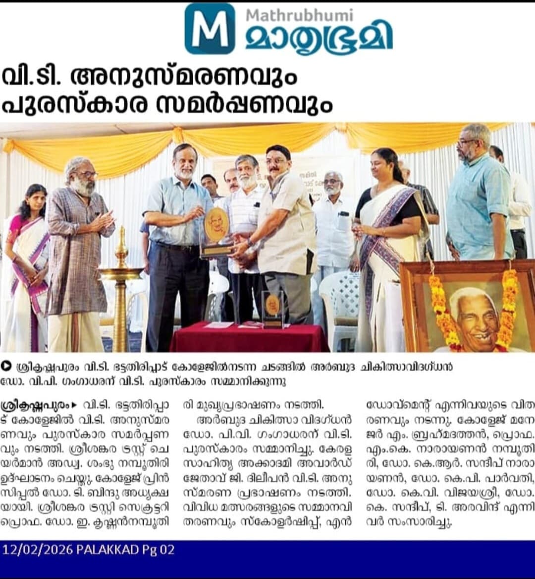 "Sreekrishnapuram V.T. Bhattathirippad College is an excellent educational institution where I studied for my BA Degree in Sanskrit. I proudly say that the department of Sanskrit of the college is the most prominent one because of its academic achievement."